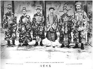 Phủ phụ chánh triều vua Duy Tân. Từ trái sang phải: Tôn Thất Hân (thượng thư bộ hình), Nguyễn Hữu Bài (thượng thư bộ lại), Huỳnh Côn (thượng thư bộ lễ), Hoàng thân Miên Lịch, Lê Trinh (thượng thư bộ công), Cao Xuân Dục (thượng thư bộ học)