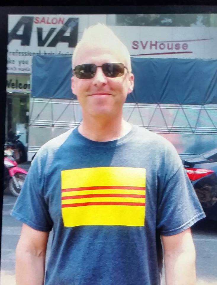 Hôm 24/3/16,có việc nhà anh bạn B…B vềVN, tại phi trường Tân Sơn Nhứt ( tôi dùng đúng tên của phi trrường VNCH) anh chứng kiến một vụ ” lộn xộn ” một du khách Mỹ với chiếc T Shirt in cờ Vàng bị an ninh sân bay hoạnh họe ,anh bạn chụp được bức hình,nhưng sợ sự chú ý của an ninh anh vào một quán cafe ngồi chờ xem động tĩnh, một lát sau du khách mỹ đó vào đúng quán anh bạn đang ngồi, anh lân la trò chuyện thì anh Mỹ cho biết anh đi từ Hà Nội vào, và cũng vì chiếc áo này anh đã bị an ninh phi trường Nội Bài làm phiền anh 3 tiếng đồng hồ. Họ yêu cầu anh lột chiếc áo,không mặc nửa, anh cho biết mặc gì là quyền tự do của anh, anh không làm bất cứ đều gì theo lệnh giới chức trừ phi đó làyêu cầu của đại diện toà đại sứ Mỹ . Cuối cùng họ phải để anh đi sau 3 tiếng. Anh cho biết anh quyết định mặc cùng chiếc áo đó vào Sài Gòn như một hành động thể hiện quyền tự do cá nhân.